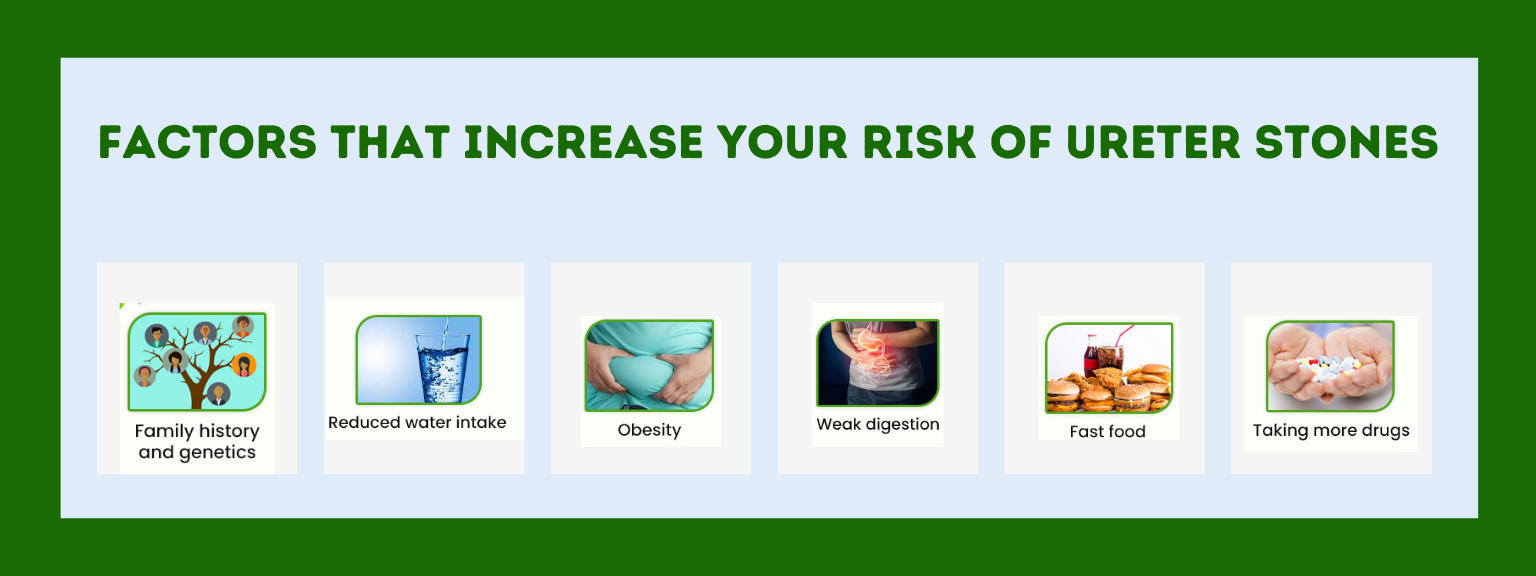 When a stone-forming component is present in your urine in excess, urinary stones might develop. The components of ureteral stones often flow through your urine system without any problems. When they don't, it's typically because you're not drinking enough water, which prevents your body from dissolving or flushing the chemicals. After then, the chemicals begin to crystallize.